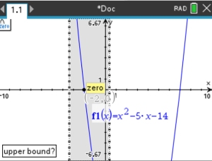 Scroll (not arrow) the pointing hand, , to the left of one of the roots, click, , to lock the location. This will be called the "lower bound".