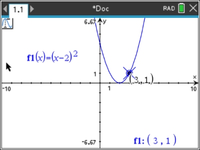 After setting the step to 0.1, the spider now moves in tenths across the graph at the right.