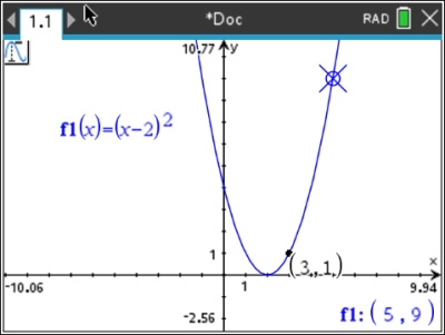 Values such as y-intercept, x-intercept, zero, maximum and minimum of the graph will automatically appear when encountered by the "spider".